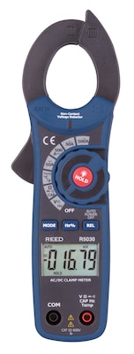 This compact autoranging True RMS clamp meter is capable of measuring AC/DC current and voltage, resistance, frequency, capacitance, duty cycle and temperature. Featuring a 50,000 count backlit LCD display, double molded plastic housing, the R5030 includes diode check and continuity functions and a non-contact voltage detector built into the clamp tip.