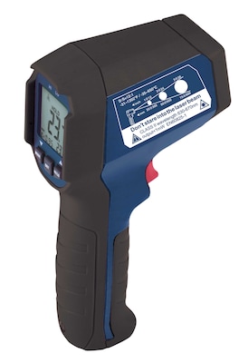 This infrared thermometer features a 12:1 distance to spot ratio and has been drop tested up to 6.5 feet. The R2310 has the ability to track maximum, minimum, average and differential readings and the ability to set high/low alarms and monitor continuously.