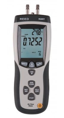 REED R3001 Pitot Tube Anemometer and Differential Manometer, with Air Volume (R3001)