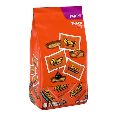 - Contains one (1) 28.05-ounce party pack of REESE'S Assorted Flavored Milk Chocolate Peanut Butter Cups Candy