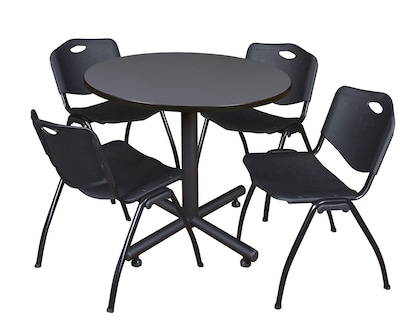 Regency 42-inch Round Laminate Gray Table With 4 M Stacker Chairs, Black (TKB42RNDGY47BK)