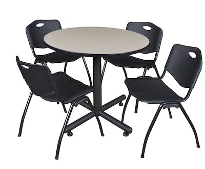 Regency 42-inch Round Laminate Maple Table with 4 M Stacker Chairs, Black (TKB42RNDPL47BK)