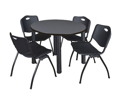 Regency Kee Breakroom Table, 42"W, Gray/Black & 4 'M' Stack Chairs, Black (TB42RNDGYBPBK47BK)