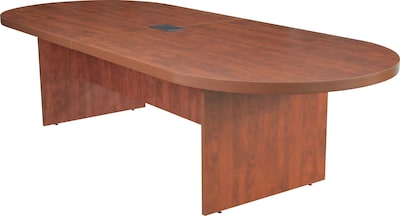 Regency Legacy racetrack conference table with power/data grommet, measures 29" x 120" x 47" and has moisture resistant thermally fused melamine lamination in elegant cherry finishing.