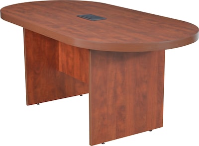 Regency Legacy racetrack conference table with power/data grommet, measures 29" x 71" x 35" and has moisture resistant thermally fused melamine lamination in elegant cherry finishing.