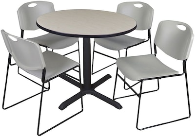Regency Seating Cain 42" Round Breakroom Table- Maple & 4 Zeng Stack Chairs- Grey