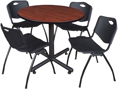 Regency Seating Kobe 42" Round Breakroom Table- Cherry & 4 'M' Stack Chairs- Black