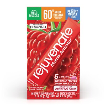 Rejuvenate Muscle Activator Drink Mix Sticks, Single Serving Protein Powder Packets to Go - Raspberry Burst, 14 Count