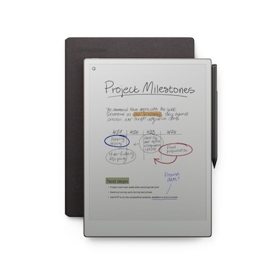 Bring paper into your digital workflow with reMarkable Paper Pro. Ultra-slim and portable, but with a full-size 11.8” color display, adjustable reading light, and an unmatched paper-like writing experience. The all-new Marker Plus is an exceptionally precise, high-quality tool for note-taking, sketching, annotating, and erasing. Balanced and weighted like a real pen for all-day comfort. Keep your paper tablet and Marker safe while working and on the go with the Book Folio cover in Mosaic weave - Basalt.