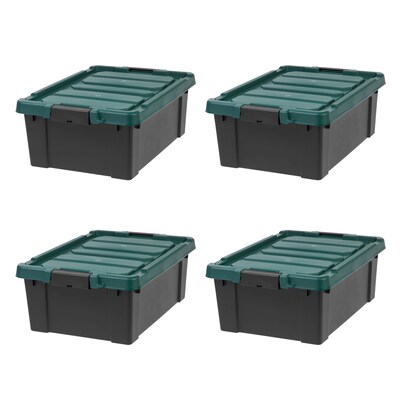 Remington Store-It-All 11.75 Gal. Storage Container with Latching Lid, Plastic, Black & Green, 4/Pack (591007)