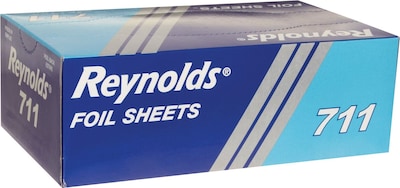 The Reynolds Wrap® RFP711 9" x 10 3/4" silver pop-up interfolded aluminum foil sheet reduces cleanup and ensure your food stays fresh. This foil sheet withstands high heat and extreme cold, making it ideal for grilling and freezing. Foil sheet also offers