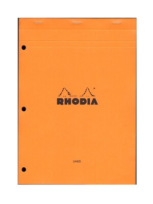 Rhodia Classic French Paper Pads Ruled With Margin, 3-Hole Punched 8 1/4 In. X 11 3/4 In. Orange [Pack Of 3] (3PK-18601)