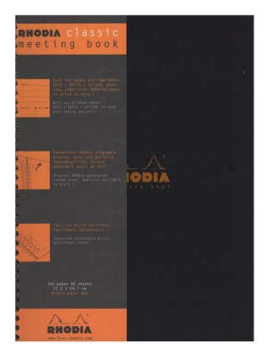 These Meeting Books combine the classic Rhodia design and premium materials with a concise note taking system. Each page is lined and pre-printed with fields for the date, notes, and action, so you can keep your meeting notes organized and easy to reference. Micro-perforated sheets allow easy removal.