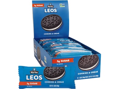 Why are so many sweet snacks loaded with sugar" To solve this problem, the Rip Van reimagined the classic sandwich cookie to be a better snack: the Leos cookies contain five times less sugar (compared to other sandwich cookies) and 110 calories per serving.