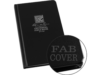 This Rite In The Rain All-Weather Universal 4.75" x 7.5" hardbound notebook is discretely sophisticated with its black Fabrikoid cover and subdued light gray tinted paper. Everything from the cover, paper, sewn-in pages, and even glue is designed to survive mother nature's wrath.