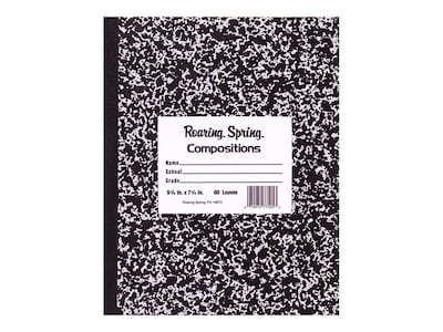 Keep notes organized with this composition book. The center-sewn binding is permanent, so you don't have to keep track of loose pages, and the marble cover is flexible, making it easy to store this composition book in a backpack. This Roaring Spring Paper Products marble composition book has 120 wide-ruled pages so you can write with large, clear letters.