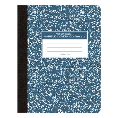 Record your notes, sketches, or drawings in this permanently bound 100-sheet unruled hard cover blue marble composition book.