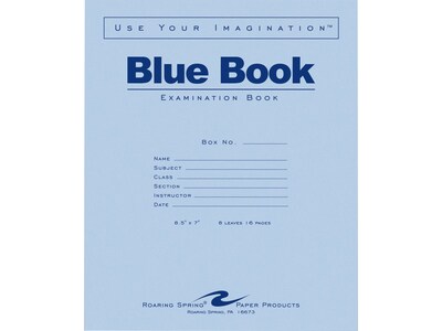 Roaring Spring Paper Products Exam Notebook, 7"x 8.5", Wide-Ruled, 8 Sheets, Blue, 600/Carton (77512CS)