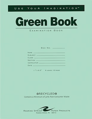 Roaring Spring Paper Products Exam Notebooks, 8.5" x 11", Wide Ruled, 8 Sheets, Green (77509)