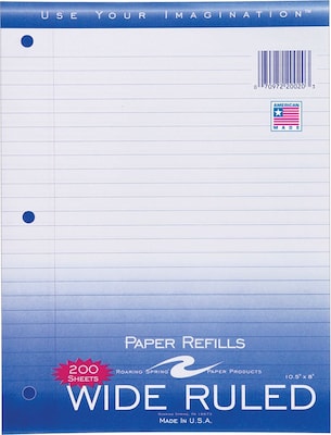 Roaring Spring Paper Products Wide Ruled Filler Paper, 8" x 10.5", 3-Hole Punched, 200 Sheets/Pack (20020)