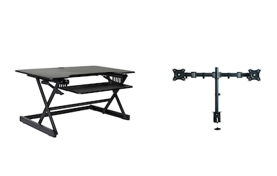 - Stand up desk bundle includes a Dual Monitor arm that holds two 13-27" screens with standard 75x75mm & 100x100mm pattern