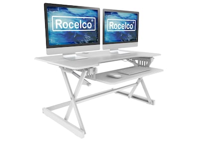 Rocelco 40"W 5"-20"H Adjustable Standing Desk Converter, White (R DADRW-40)