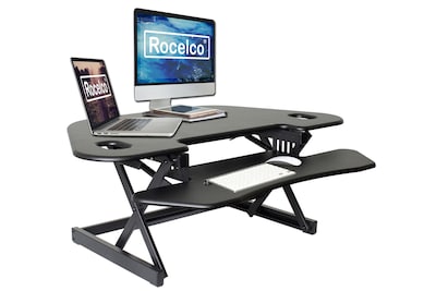 Rocelco 46"W Manual Adjustable Corner Standing Desk Converter, Black (R CADRB-46)