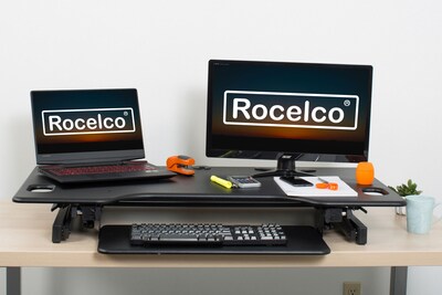 Rocelco 46"W Manual Adjustable Standing Desk Converter, Black (R DADRB-46)