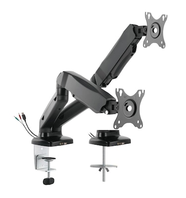 Rocelco MA2 – Double monitor Arm with GPCMA (Gas Piston Counterbalance Motion Assist) allows effortless independent screen adjustment for comfortable viewing. Fits two 13"-27” screens up to 14.3 lbs each. Includes USB and multimedia ports to conveniently connect and charge your devices. Quick installation and adjustment - no tools required. Cable channels provide a hassle-free way to run your cables and maintain a tidy uncluttered workspace. Includes two mounting systems to attach to your desk - clamp and grommet.