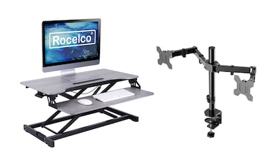 Sit or stand up with the Rocelco 31.5" Adjustable Height Standing Desk Converter and Dual Monitor Mount