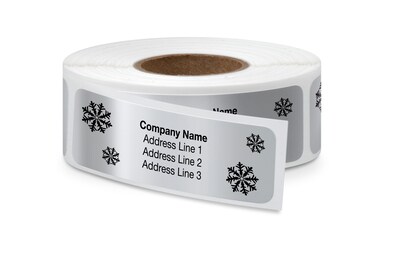 Rolled Address Label, 2 1/2" x 3/4" Rectangle, Silver, Black Ink, 250 Labels, 1/Roll