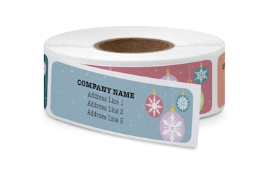 Rolled Address Label, 2 1/2" x 3/4" Rectangle, White Gloss, Full Color, Assorted Designs, 250 Labels, 1/Roll