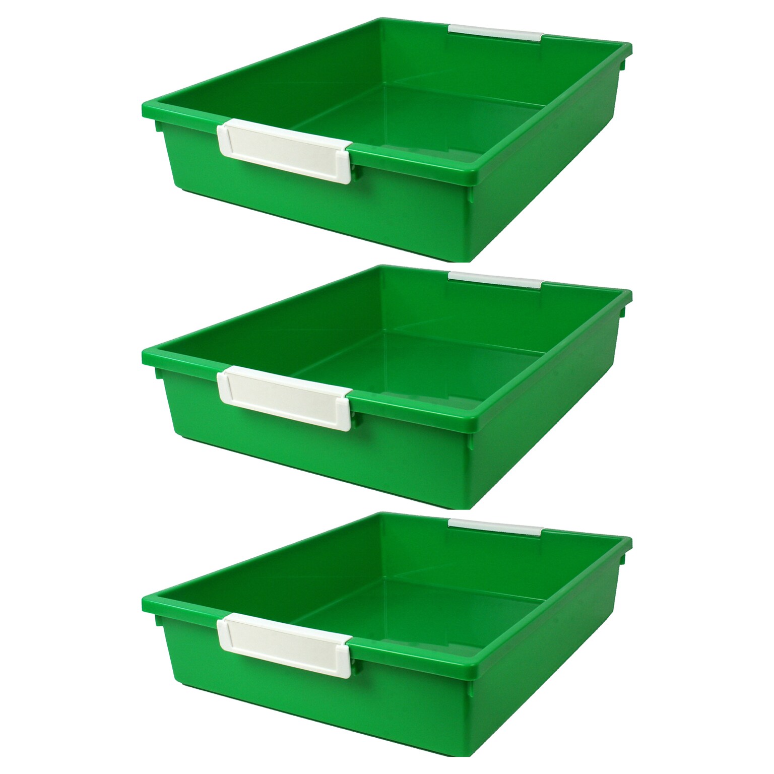 Large enough for papers, books, notebooks, and other materials, these sturdy bins corral supplies and can be stacked for easy storage