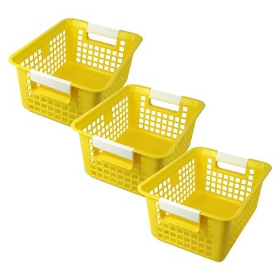Romanoff Plastic Tattle® Book Basket, 12.25" x 9.75" x 6", Yellow, Pack of 3 (ROM74903-3)