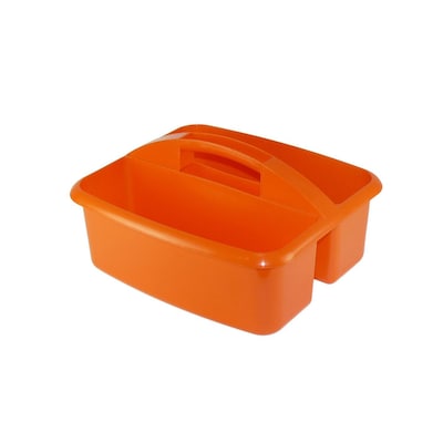 Romanoff Products Large utility caddy in orange color with gloss finish measures 12 3/4" x 11 1/4" x 6 3/4" and is ideal for children.
