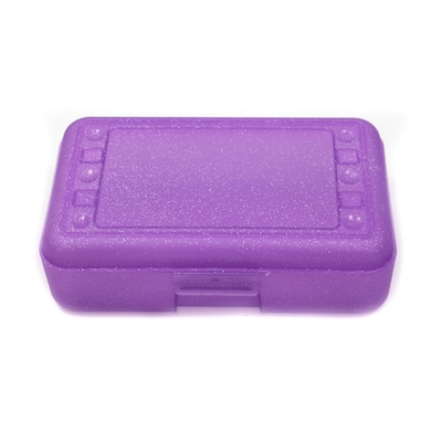 Romanoff Products Pencil box in purple sparkle color with matte finish measures 8 1/2" x 5 1/2" x 2 1/2" and is perfect for children.