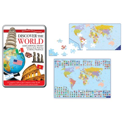 Each Discover the World tin set contains a detailed 32 page reference book, an educational wall chart, and a 100 piece World puzzle. Fun ways to discover and explore the world around us! Sold as a pack of 2 complete tin sets.
