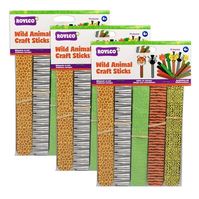 Roylco Animal Print Craft Sticks, 50/Pack, 3 Packs (R-39100-3)