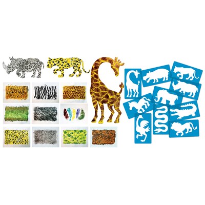 Get ready for an art adventure! Safari animal shaped stencils and wild animal skin rubbing plates for making wall decorations, fabric arts, paper crafts and more! Each pack includes 10 stencils (5" x 9") and 10 rubbing plates (8.5" x 6"). Made in USA.
