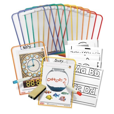 Encourage students to use problem-solving techniques and show their progress with this reusable worksheet cover. Slip your printouts right into the worksheet cover, and let children use the dry-erase surface to figure out math problems, practice penmanship or write vocabulary words. Each cover features a blank space for the student's name, making it easy to keep track of who is currently using the worksheet.