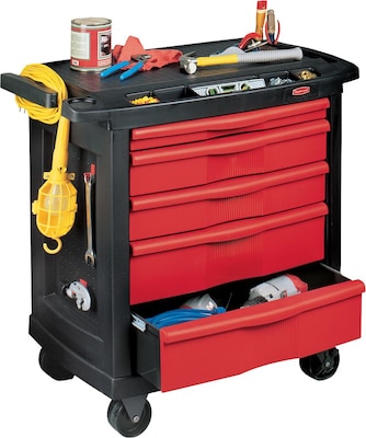 - Rubbermaid mobile work center with five drawers for ample storage space