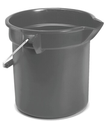 Combine cleaning concentrate with water easily in this gray 10-quart bucket. The walls are constructed from heavy-duty plastic for extra sturdiness, and the molded-in spout allows for easy pouring. This Rubbermaid bucket has a handy metal carry handle for transport.