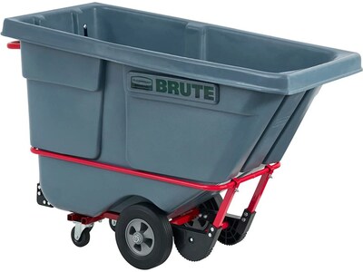 The Rubbermaid Brute standard-duty tilt truck features an industrial-strength construction and can transport loads up to 850 lbs. with ease. The rotomolded plastic construction won't rust, dent, chip, or peel and is easy to clean. The DuraTilt frame enables controlled dumping by one person, and reinforced corner points help prevent scraping and paint transfer onto the ground during dumping.
