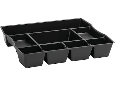 It's always good to have that extra storage for your home or office. This Rubbermaid drawer tray provides you with a space for easy organization of your work supplies. Equipped with eight compartments to fit pens, pencils, paper clips, staples, sticky notes, and other small office supplies. Made with 25% post-consumer recycled plastic.