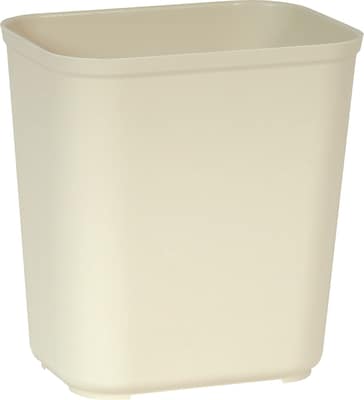 Rubbermaid 7-gallon beige polyester fire-resistant waste baskets are made from fiberglass for long-lasting, durable use.