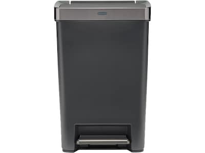 The Rubbermaid Premier Series III Step-on Container introduces a modern and warm aesthetic to your home. The charcoal resin body with charcoal stainless-steel rim and foot pedal complements kitchen appliances and hardware. Fingerprint resistant coating on the stainless-steel ensures a clean, premium look and feel to the container throughout the day. Flared Anti- Slide Base complements kitchen appliances while increasing container stability.