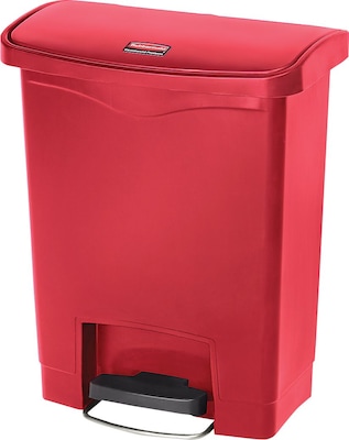 Rubbermaid Slim Jim Resin Front Step-On Trash Can, 8 Gallons, Red (1883564)