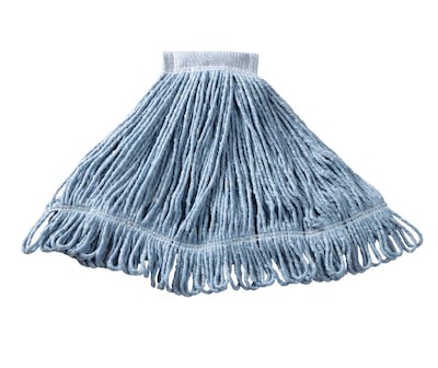Clear away spills and perform general floor maintenance with these mop heads. The combination of cotton and synthetic fibers absorbs liquids efficiently, and the blue 5-inch headband works in a color-coded cleaning zone system. These Rubbermaid mop heads have looped ends and a yarn tailband for extra floor coverage without tangling.