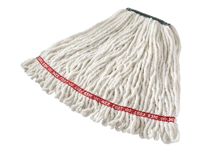 Reduce odors and stains with this looped-end, antimicrobial mop. Its medium head and 1-inch band with clamp-style gripper work great for cleaning various surfaces. This Rubbermaid mop contains cotton and synthetic fibers that have superior liquid absorbency, allowing for faster drying times and safer walking surfaces.