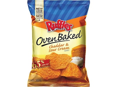Ruffles Oven Baked Cheddar & Sour Cream Potato Chips, 1.13 oz. Bags, 64 Bags/Carton (44400)